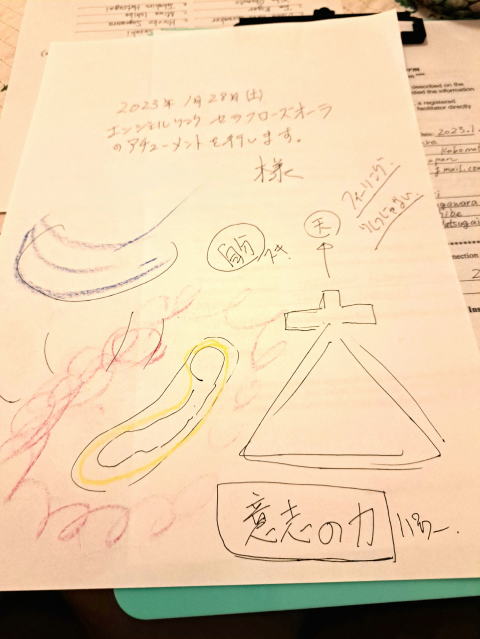 エンジェルリンクの体験談 NEW 大天使ラファエル 2023-2-15 T.S 様 (女性) 前回の大天使ミカエルのアチューメントから1週間が経過しましたので、先ずは変化や出来事などをお聞きしました。 アチューメントの後に「カーン、カーン、カーン・・・という耳鳴り? が3時間くらい続いた」とのことでリーディングをしながら分かち合いさせて頂きました。 浮かんだ言葉は「アーキテクチャー」。 そのキーワードから続いて出たのは「新しい未来の創造」です。 次元上昇とともに古い自分は手放していく必要があります。 同時に未来のステージの足場を作るための土台作りも必要です。 耳鳴りのような音はそのような意味もありました。 私の方からは、羽の生えた可愛い天使たちが何かの枠組みのようなものを作っているのが見えました。 その後、大天使ラファエルのアチューメントに入りました。 ラファエルからは「天使界の勇気」と「天使の松明」がギフトとして渡されます。 始まってすぐ、なぜかストレートと三角の定規をはっきりと見せれました。 これも先ほどの「アーキテクチャー」という言葉と繋がるのですが、新しい世界を創造&デザインするため のツールが大天使ラファエルから渡されたのです。 ![]() 「なぜラファエルからそのようなツールが?」と疑問に思うかもしれませんが、天使たちは基本的に万能ですので何でもこなせます。 その後、天使の松明を手渡すシーンはハッキリと見せてくれました。アップした絵がそれです。 放射状に広がるような光を見せてくれたのはこの方が初めてでした。360度すべてを照らすことができます。 僕自身はとてもパワフルかつ柔らかなエネルギーでその存在を感じていました。 きっと、これから新しい人生のステージへの道筋を明るく照らし導いてくれるのでしょう。 美しい分かち合いに感謝いたします。 NEW 大天使ミカエル 2023-2-8 T.S 様 (女性) 大天使たちは、ハイアーセルフと一緒に連携をとっているので、受け手の方がどの程度サポートを許可しているのかを理解しています。 ですので、アチューメントを受けた方すべての人が自分にとって100%オリジナルの経験となります。 今回は、1週間前にセラフローズオーラの受け手からどのような変化があったのかを教えて頂きました。 以下、受け手の方からのお話です。 「今取り組んでいるプロジェクトに一緒に関わろうとしている人が、どうしても意見が合わないのでもう止めようと思っていました。 しかし、エンジェルリンクのアチューメントを受けてからは相手の姿勢が変わり相手の方が自分の横柄な態度を謝ってきました。まるで人が変わってしまったようです。 他の部分でも、新しい人の引き寄せが始まり望んでいたものがどんどん来るという感じです。 自分だけ違う世界に飛び込んでしまった感じがします。まるで不思議な国のアリスみたいです。」 という貴重な体験談を頂きました。 サポートに入る天使たちは、ときにダイレクトに物事を動かしているように感じることもあります。 現実創造は自分の波動と意識の変化によって変わるものです。 すべての天使たちは基本的には万能なので何でも出来ます。 どれだけ深く天使たちと関わるかによっても経験するものは異なります。 現実や状況で固定されいてるものは一切ありませんので許可証を出しさえすれば一瞬で変わることもあります。 今後、この方がどのように創造性を発揮されて経験を発展されていくのか楽しみでなりません。 全ての人がクリエイターです。 そのような訳で、今回の大天使ミカエルのアチューメントで見させて頂いたビジョンを分かち合います。 セラフローズオーラの時と同様に、まず最初に意識界の扉が開きました。いわゆるポータルオープンです。 その後、沢山の天使たちとスピリットや精霊たちが見守られながら大天使ミカエルからギフトが渡されました。 エンジェルリンクの大天使ミカエルのテーマは「ノンジャッジメント」と「天使界の光輪」ですが、特に今回は「光輪」を鮮明に見せてくれました。 頭頂に光輝いた光輪は、天使界との繋がりを表すシンボルのようなものです。 光輪の内側は白くまぶしく光っていました。 ![]() そこにミカエルから光が注がれ、すべての必要なプロセスが成されました。 このようなシーンを見せて頂くたびに自分が神聖な瞬間に立ち会っていることをリアルに認識します。 これは本当にありがたく「永遠の喜び」に至るような感動の経験なのです。 稀に起こることなのですが、エンジェルリンクのアチューメントを受けるとき、かなりの光が注がれますので波動もかなり上がります。 次のステージに上がる準備が出来ている方は、古くて重い波動を手放す必要があります。 そのような波動は無条件の愛をもって扱えば容易に手放すこともできます。 今回は、昔の記憶を思い出しながら体の痛みとして浮上させてくれました。 その痛みは「その学びの完結の時が来ました」のサインです