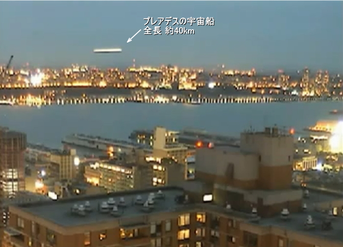 こちらも同じ日に現れたプレアデスの母船です。全長約40kmです。
